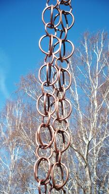 Дождевые водосточные цепи дают красивую и функциональную альтернативу традиционным, закрытого сечения водосточным трубам. Поток дождевой воды стекает вниз по цепи или чашам с крыши на землю, дождевые цепи преобразуют обычную водосточную трубу в приятный взору водный объект,